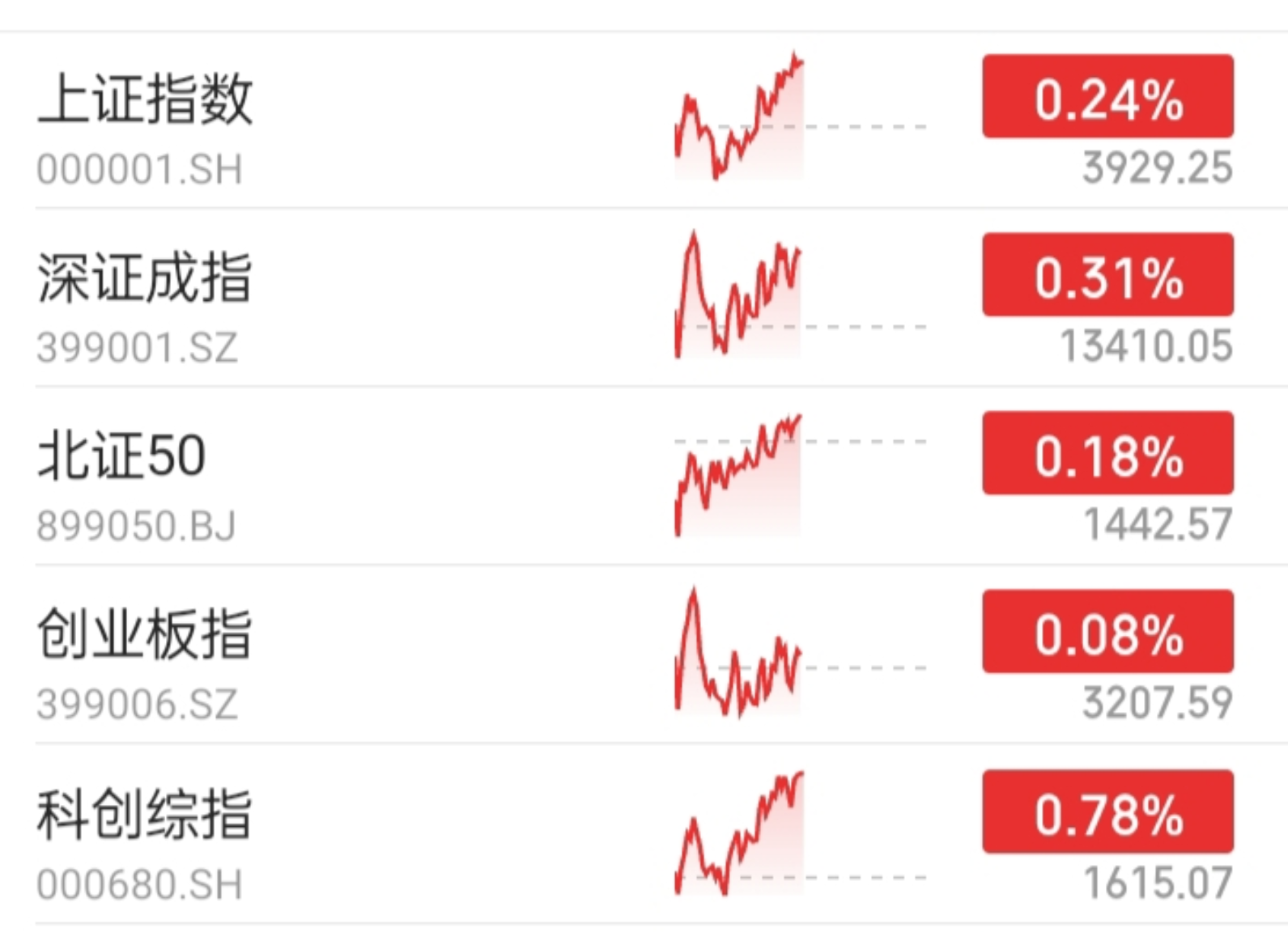A股行情:截至中午,全市场各主流宽基指数全线收红。