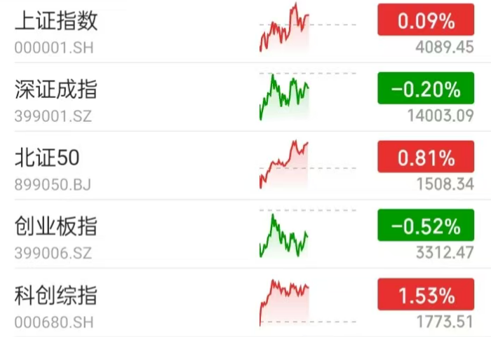 大家好啊,在经过连续上涨之后今天A股走势较为震荡。截至午盘,三大指数涨跌不一,其中上证指数微涨0.09%,而创业板指和深证成指均有所调整;而债市方面则有所反弹,其中利率债表现优于信用债;最后转债市场继续全线上涨。