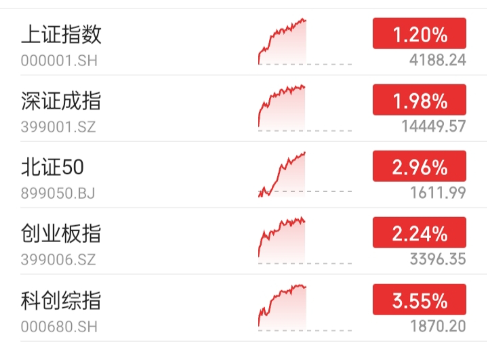 A股行情:截至中午,A股主要指数全线上涨,其中科创综指涨逾3%