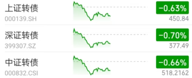 可转债行情:截至午盘,可转债三大指数全部回调。