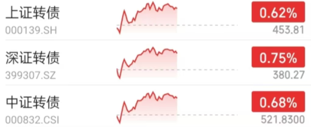 可转债行情:截至午盘,可转债三大指数全部上涨。