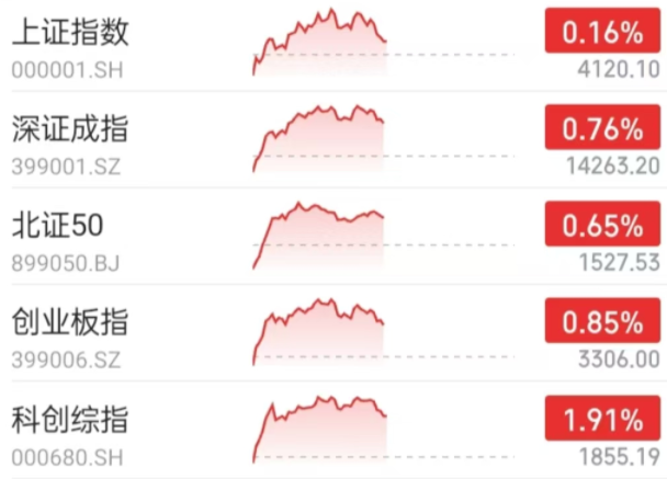 A股行情:截至午盘,各主流宽基指数全部上涨