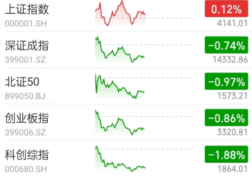 A股行情:截至午盘,除上证指数上涨外,市场各主流宽基指数全部下跌