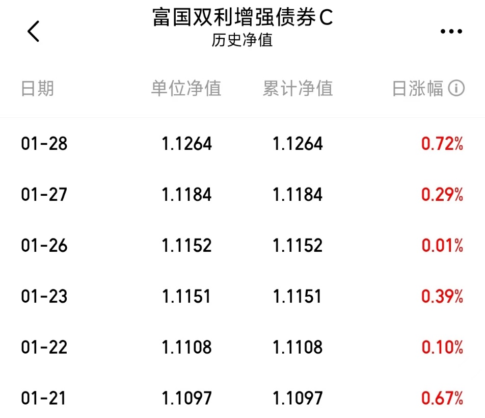 而富国双利增强昨天收了72个蛋,连涨了6天。
