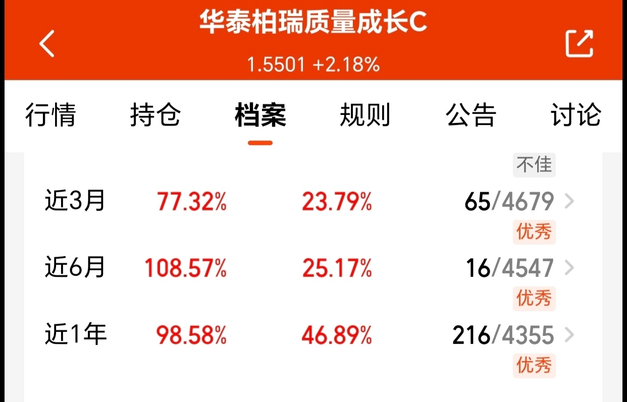 算力果然是AI最先受益的产业链,华泰质量成长今天涨2.18%,三个月77%,半年