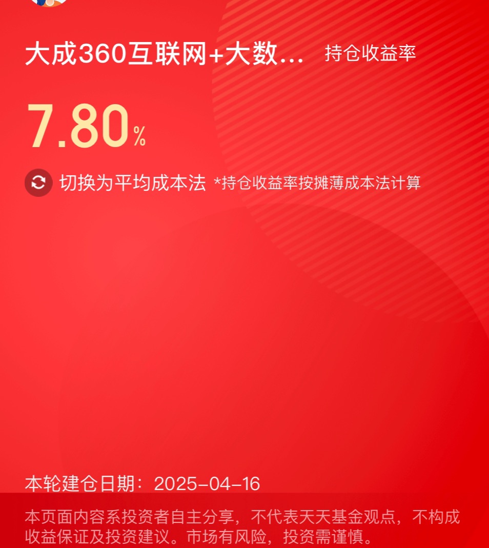 当前坚定的看好科技板块,值得一提的是$大成360互联网+大数据100C$ 这基深度布局科技板块,百股拧成一股劲,历史收益亮眼,近三年收益为74%,在同类排名第1,这么好的基入手即赚