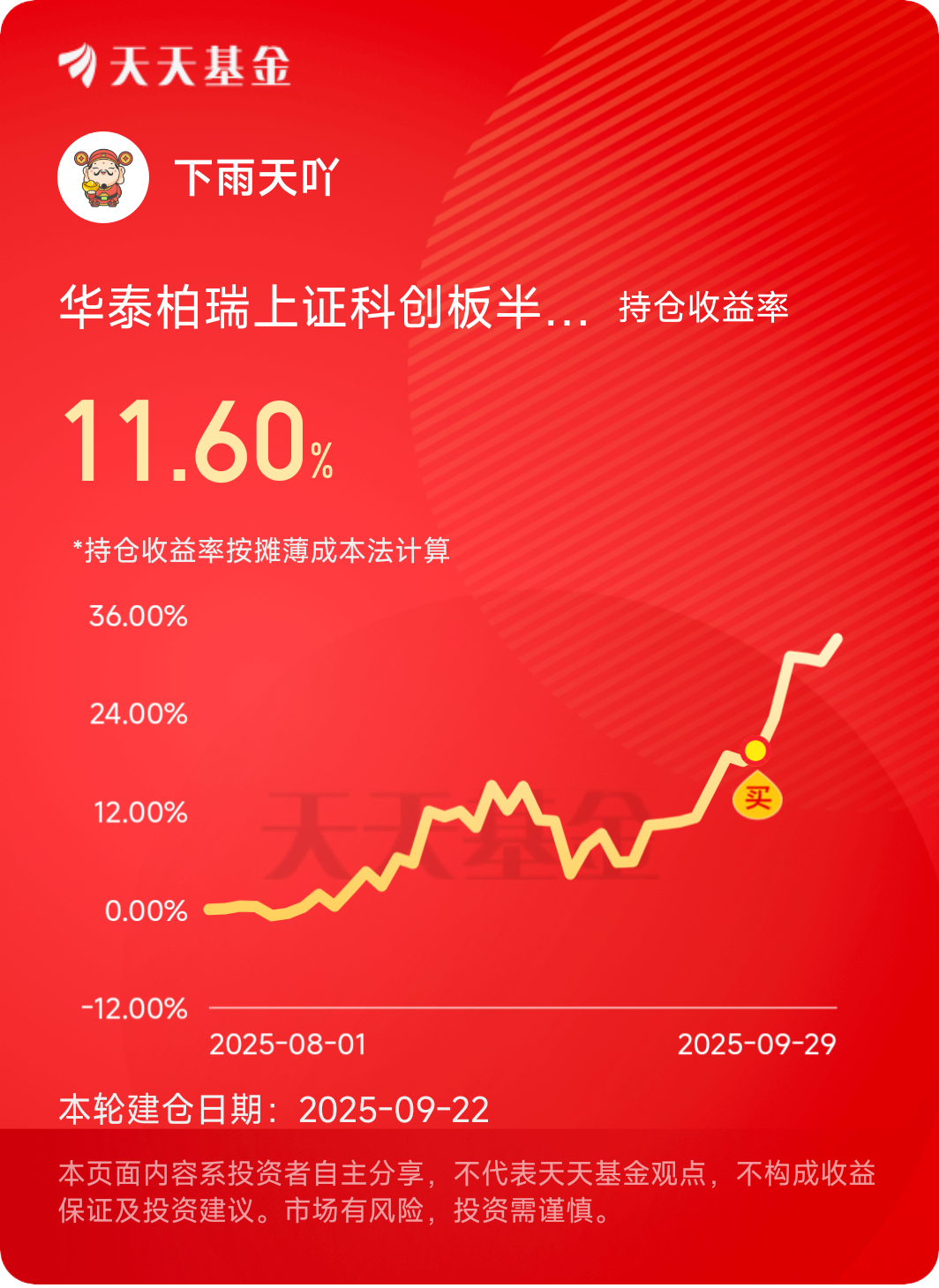 半导体行情持续升温,$华泰柏瑞上证科创板半导体材料设备主题ETF发起式联接C$ 今天估值涨了1.81%,近一个月涨了11.61%,设备板块表现最突出。