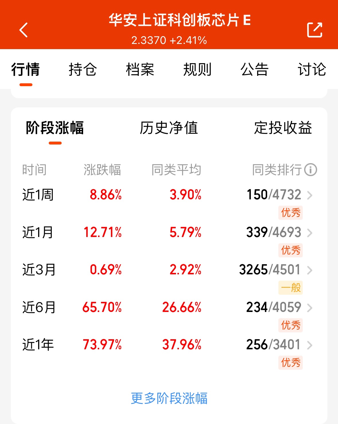 想投芯片怕踩雷?选$华安上证科创板芯片ETF发起式联接A$ 0 折申购,近一年涨 73.97%,重仓龙头,稳稳吃行情