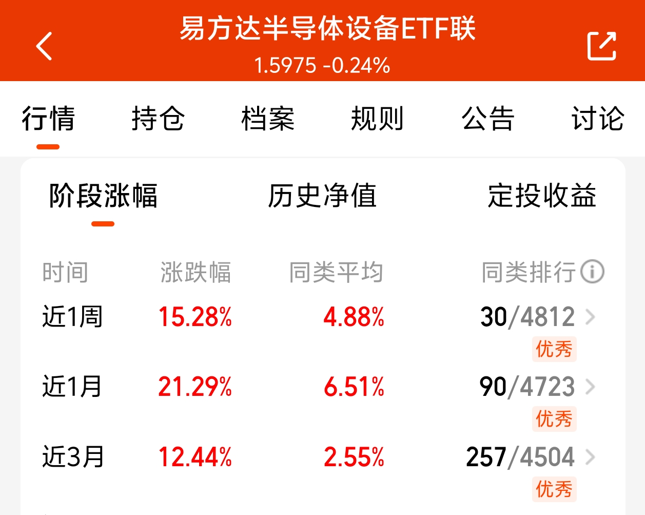 最近市场太给力了,今天市场成交量突破三万亿,量价齐升,持有的宝子,最近都吃到大肉了吧!$易方达半导体设备ETF联接C$ 最半导体设备走势强劲,近一周涨幅15.28%,远远跑赢大盘指数。科技是新质生产力核心要素,随着国产替代加入进程,流星相信,后市还会有上升空间,目前市场行情向好,干就完了