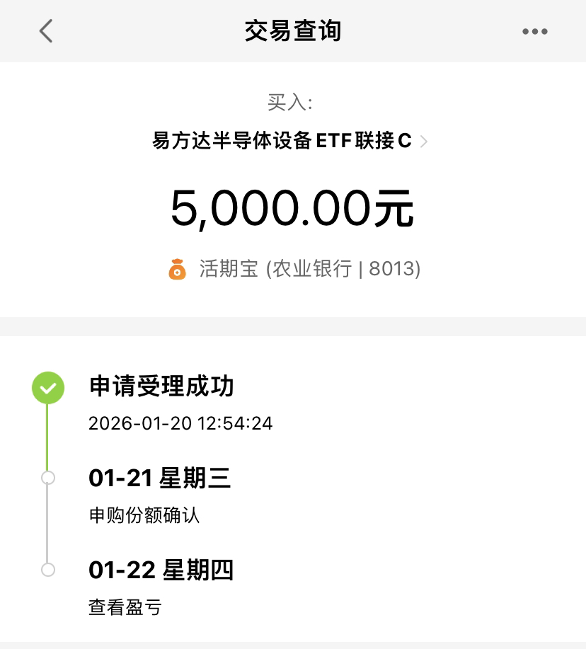 A 股超 3000 家个股下跌,半导体设备方向却跌得不多,我继续看好这个赛道!其他板块普遍跌超 2 个点,而易方达半导体设备 ETF 联接 C 估值逆势仅跌 0.72%,表现十分给力。半导体设备近期走势亮眼,近一周涨幅达 6.35%,业绩表现优秀。海外科技竞赛持续升温,国产替代的浪潮越掀越高,尤其看好存储芯片设备国产化率提升的长期逻辑。