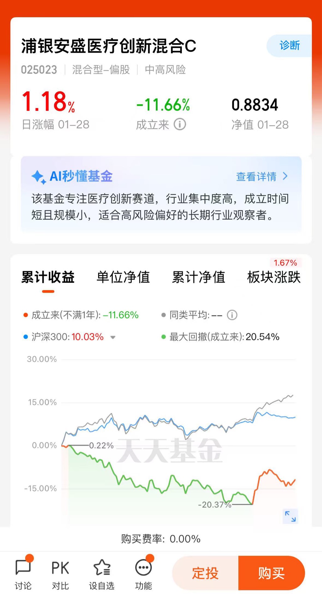 浦银安盛医疗创新涨1.18%,高BD链布局把握药企成长红利$浦银安盛医疗创新混合C$