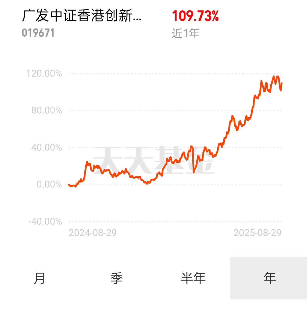 这只$广发中证香港创新药ETF发起式联接(QDII)C$(019671)专注港股创新药,前十大持仓占比接近70%,集中度很高,周三净值涨1.19%,近3月净值大涨46.81%,今年以来涨超104%,值得信赖!#九月基金投资策略#