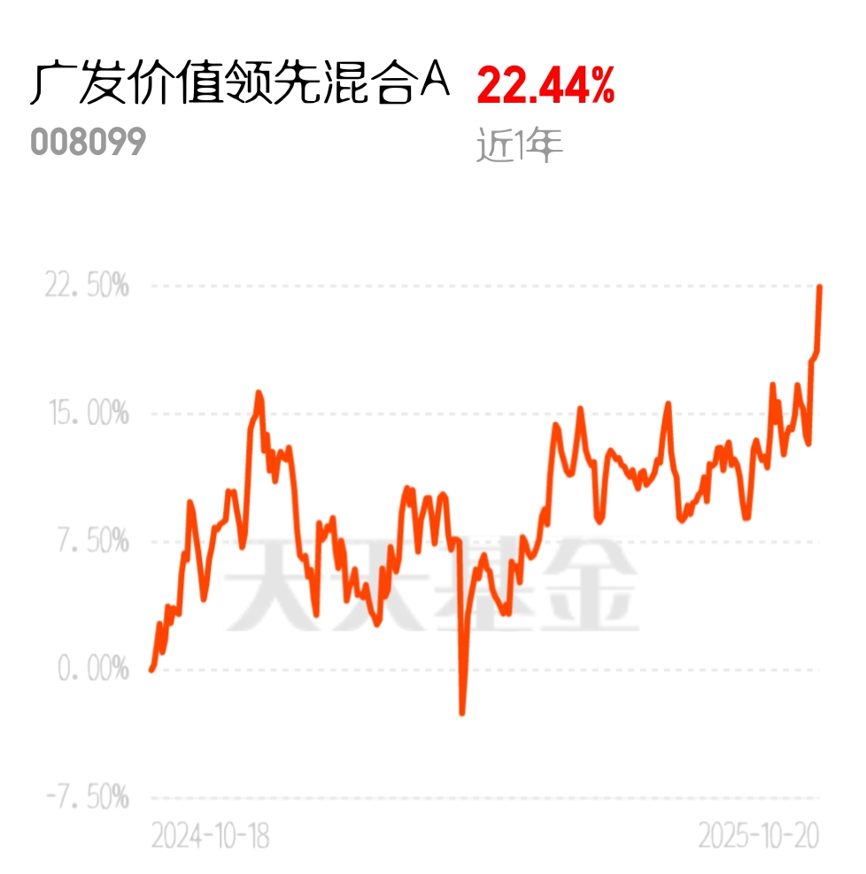基金经理能力挺不错的,看$广发价值领先混合A$这只近一周涨幅已经冲高超7%了!