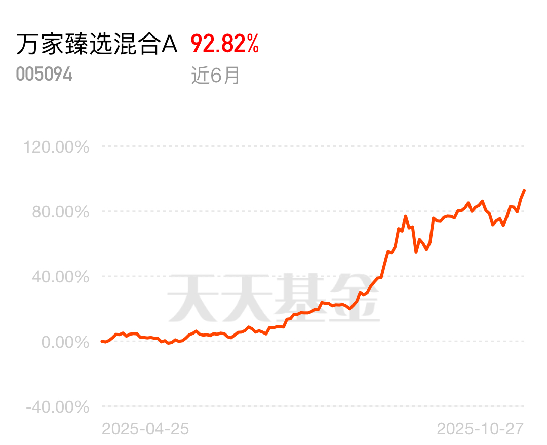 半导体板块涨势如虹,CPO和存储芯片成了领涨先锋,资金抢着进。嘉合睿金混合C紧跟节奏,1周20个点,近6个月60.98%,业绩实打实。$万家臻选混合A$