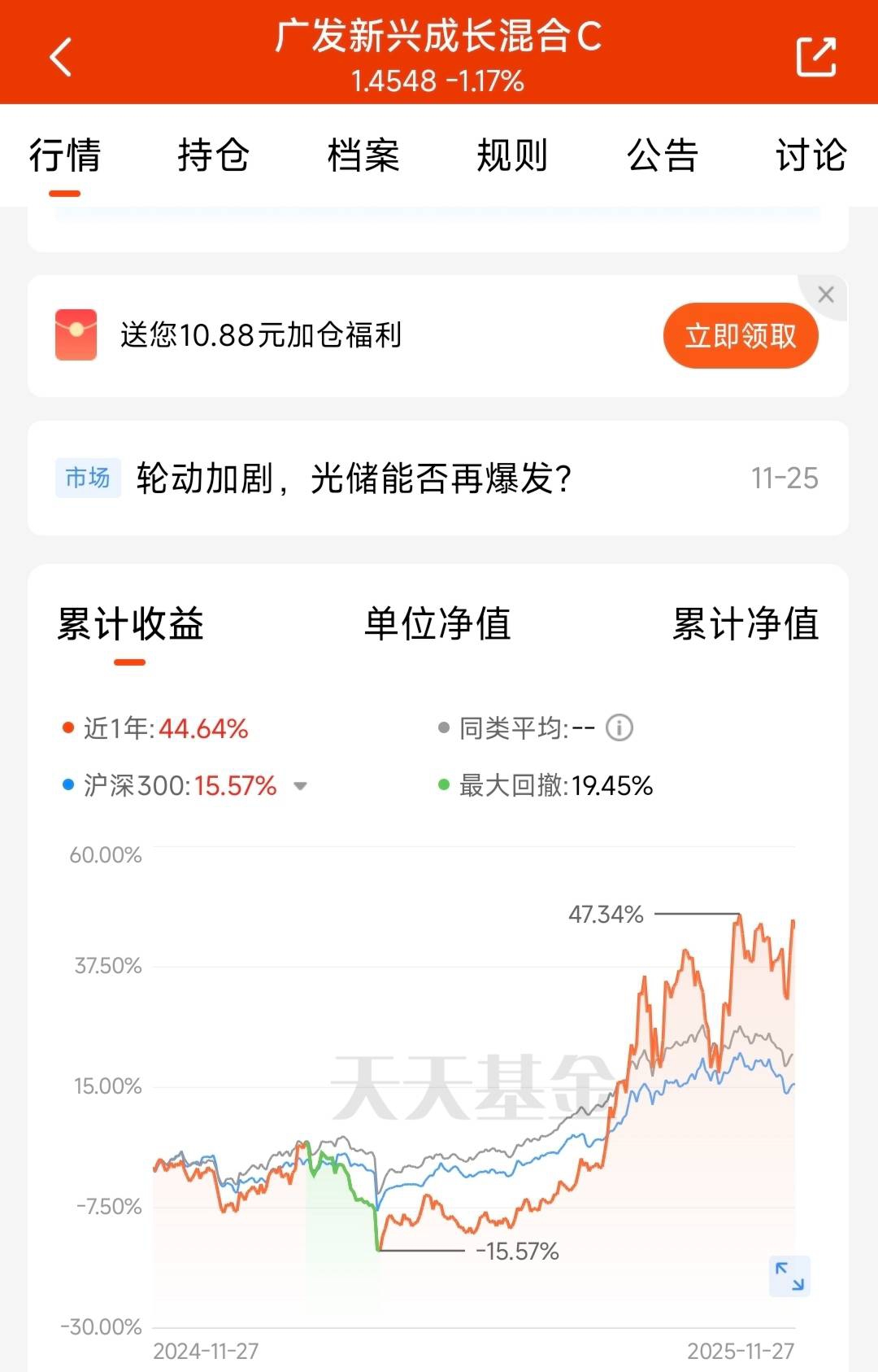 既然给了倒车接人机会那我肯定上啊!$广发新兴成长混合C$ 3个月超20个点谁不冲