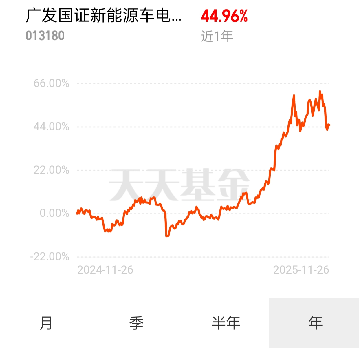 新能源车补贴政策延续至2026年,为行业提供稳定增长预期。同时,储能市场爆发式增长,2025年储能电池出货量同比增长130%,成为新的需求增长点。这只$广发国证能源车电池ETF联接C$(013180)紧密跟踪新能电池指数,上周五大涨1.56%,近6个月涨幅接近50%,在天天基金热度、近一年收益率都是最高的基金#今年你的投资目标达成了吗?#