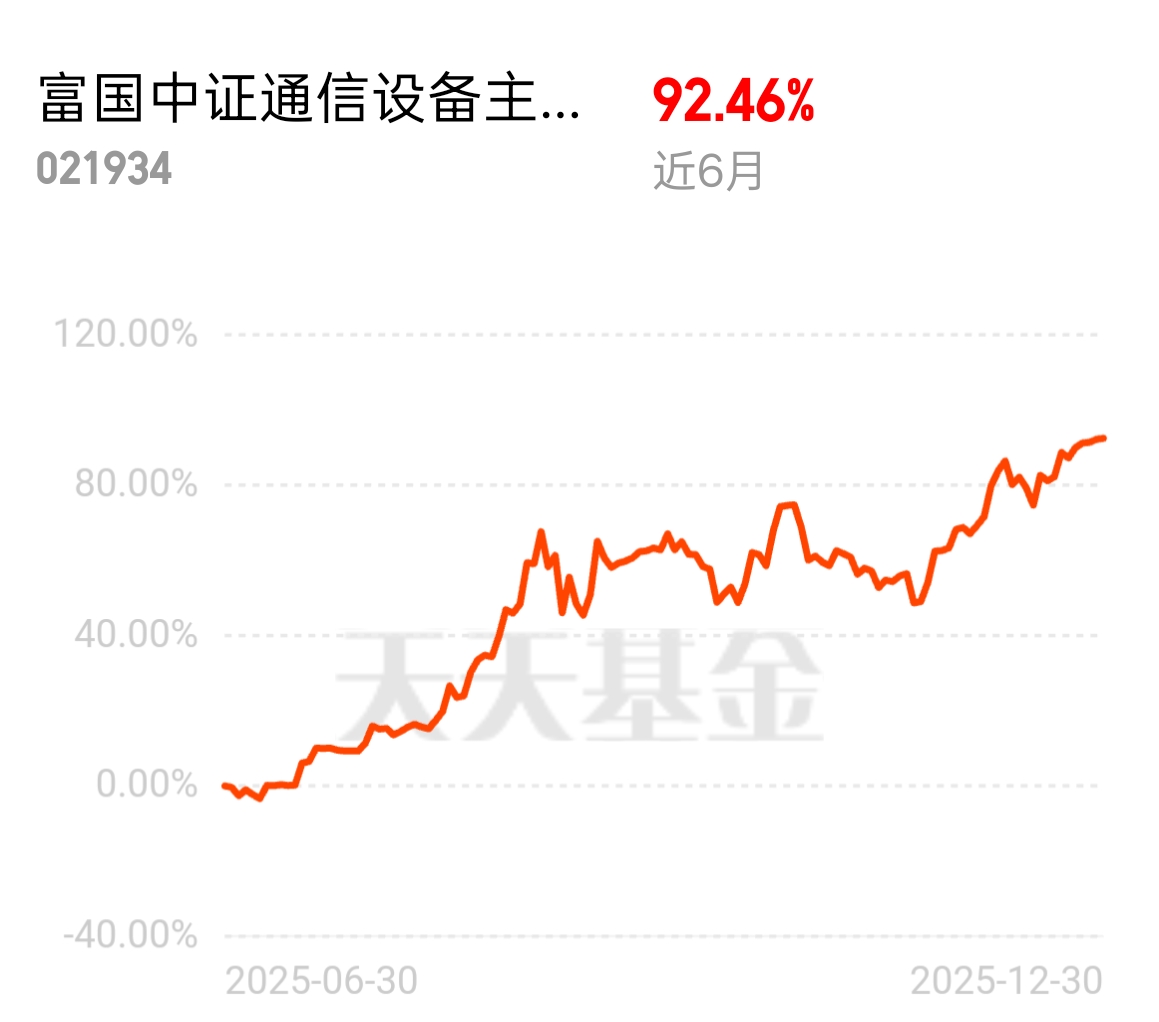 医药和科技是两条线,富国中证通信设备主题ETF联接C近半年涨97%,连涨5天,展现强动量;广发中证香港创新药ETF联接C受医保谈判和海外审批影响大,而通信设备需求来自运营商资本开支,更可控,近1年102%的收益也说明其在成长赛道中的领跑地位,适合偏好硬科技逻辑的投资者了解。$富国中证通信设备主题ETF发起式联接C$