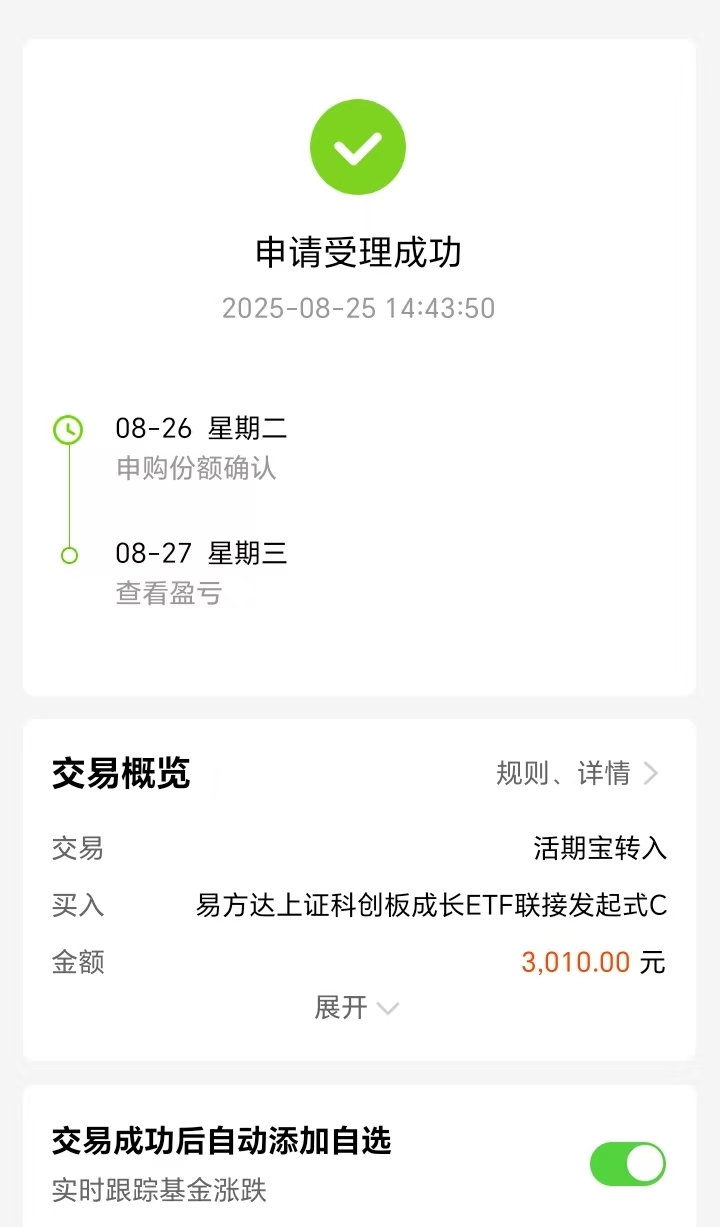 $广发上证科创板成长ETF发起式联接A(OTCFUND|019785)$ $德邦鑫星价值灵活配置混合C(OTCFUND|002112)$ $德邦半导体产业混合发起式C(OTCFUND|014320)$ $国泰CES半导体芯片行业ETF联接C(OTCFUND|008282)$ $天弘中证机器人ETF发起联接C(OTCFUND|014881)$ $银华中证创新药产业ETF发起式联接C(OTCFUND|012782)$ $鹏华上证科创100ETF联接C(OTCFUND|019862)$ $泓德医疗创新混合发起式C(OTCFUND|012482)$#大盘3800点 你踏空了吗?# #你认为本轮牛市能走多远?#