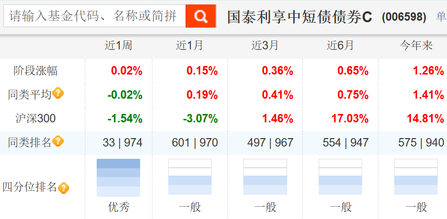然而今年市场的震荡有些超预期,相应的短债基金的表现也受到不小的影响,先来看稳健走势的代表国泰利享中短债C(006598):