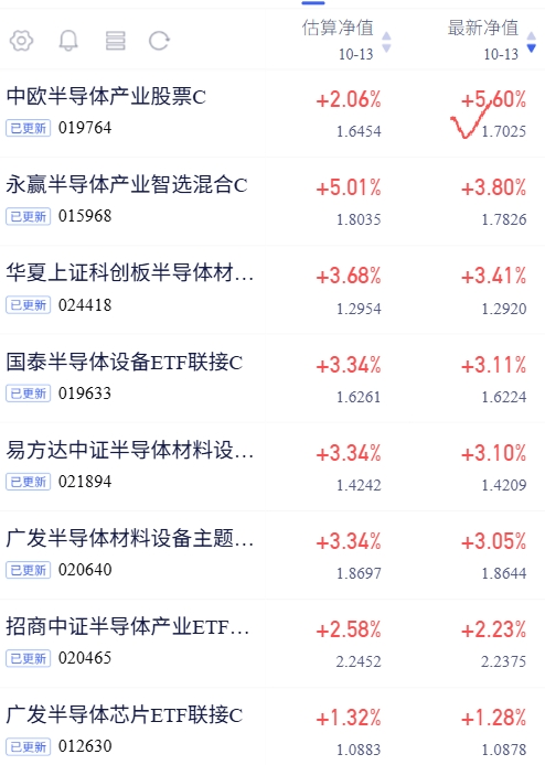 这才是半导体大黑马。$中欧半导体产业股票发起C$ 今日上涨了5.6%。大幅超出了估值的预期。不得不说还是主动的半导体基金表现更强。目前来看,基金经理大概率已经调仓半导体设备。稳稳抓住了本能的半导体主线。期待四季度继续创新高。