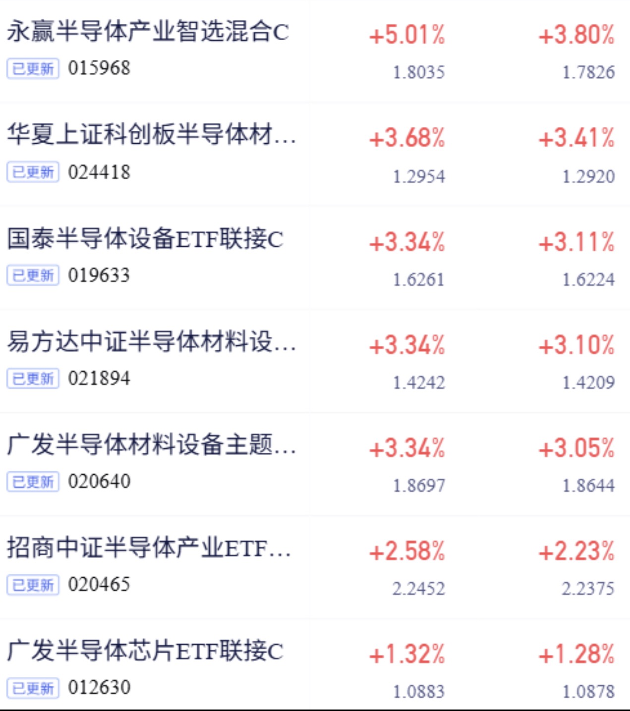 #稀土价格暴涨37%!稀土板块狂飙# $德邦半导体产业混合发起式C$ $永赢半导体产业智选混合发起C$ $东方人工智能主题混合C$ $易方达上证科创板芯片指数发起式C$ $汇添富上证科创板芯片ETF发起式联接C$