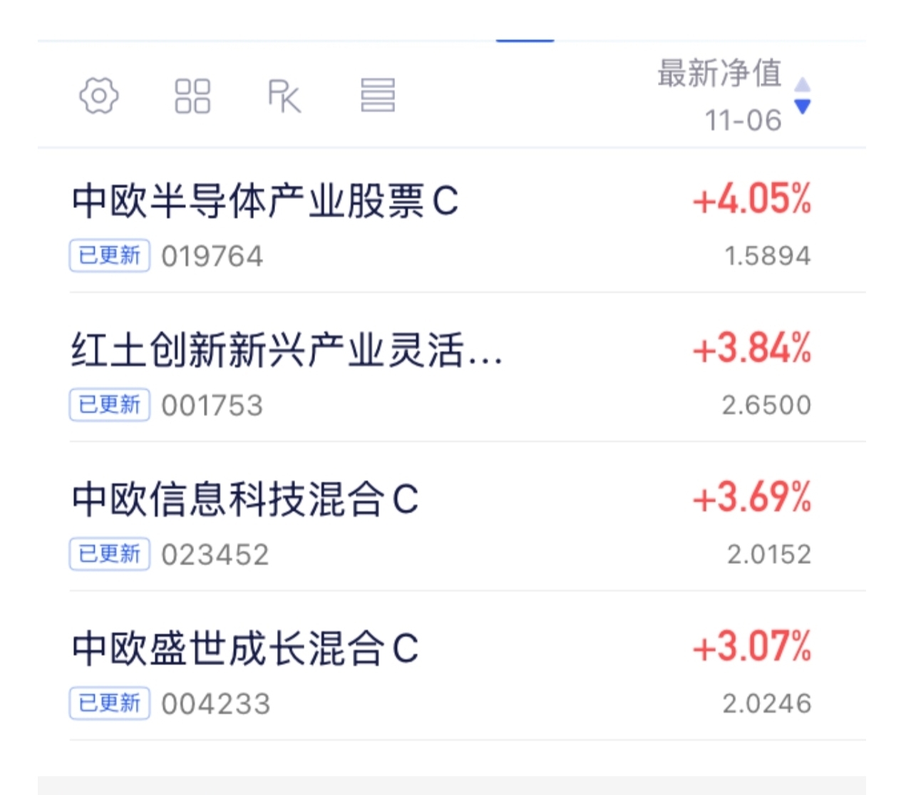 中欧信息科技混合发起C也有3.69%的涨幅。