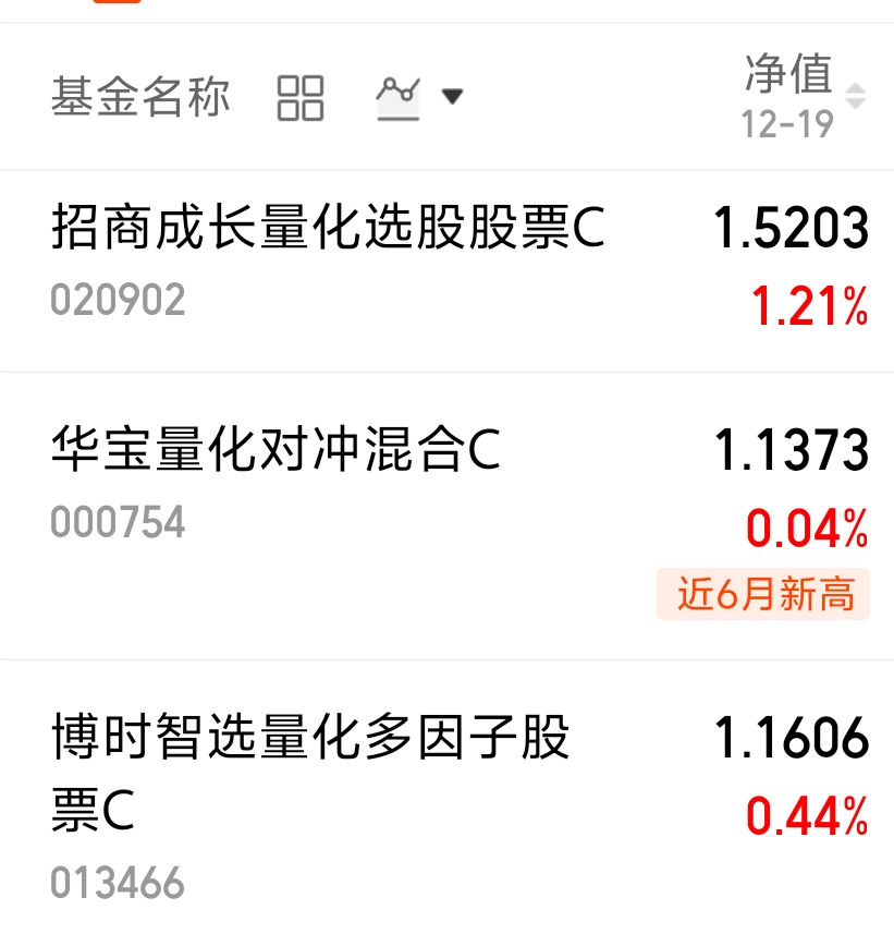 大盘上周五表现还不错,三大指数拉升上涨,量化基上周五涨了不少呢!$招商成长量化选股股票C$ 上周五涨了1.21%,表现还不错!看好这个方向!