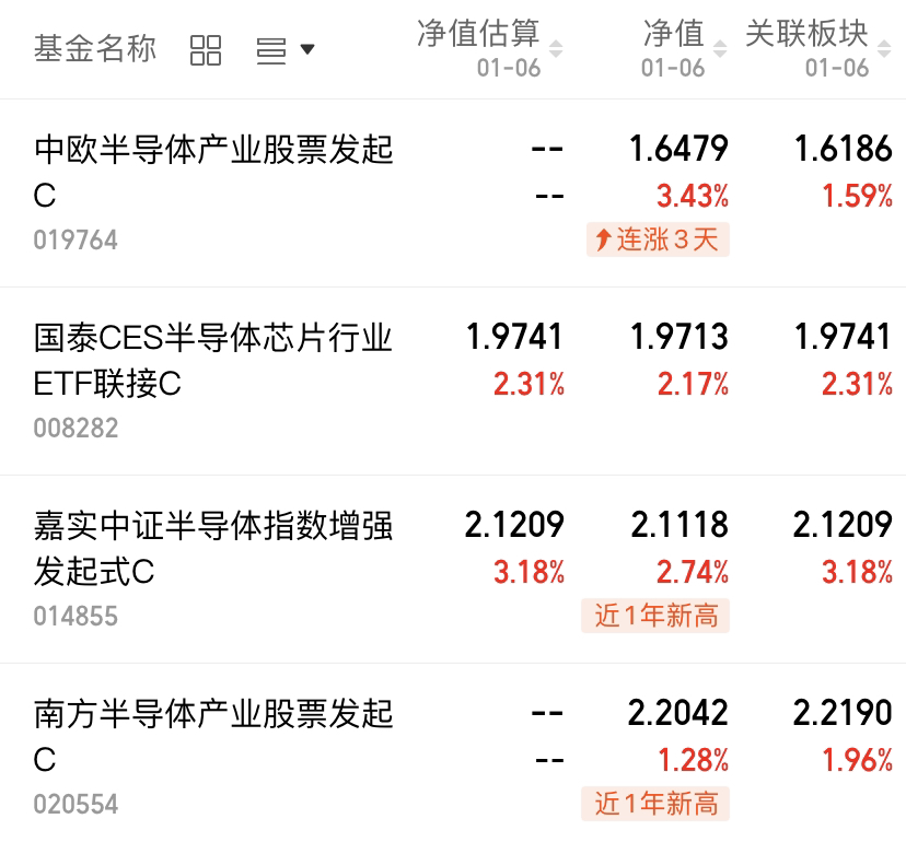 大盘真的是太给力了,昨天开门红之后,今天继续表现。尤其是半导体产业表现还是很好的,$中欧半导体产业股票发起C(OTCFUND|019764)$今天上涨3.43%,其它相关基金$国泰CES半导体芯片行业ETF联接C(OTCFUND|008282)$上涨2.17%,$嘉实中证半导体指数增强发起式C(OTCFUND|014855)$上涨2.74%,$南方半导体产业股票发起C(OTCFUND|020554)$上涨1.28%。