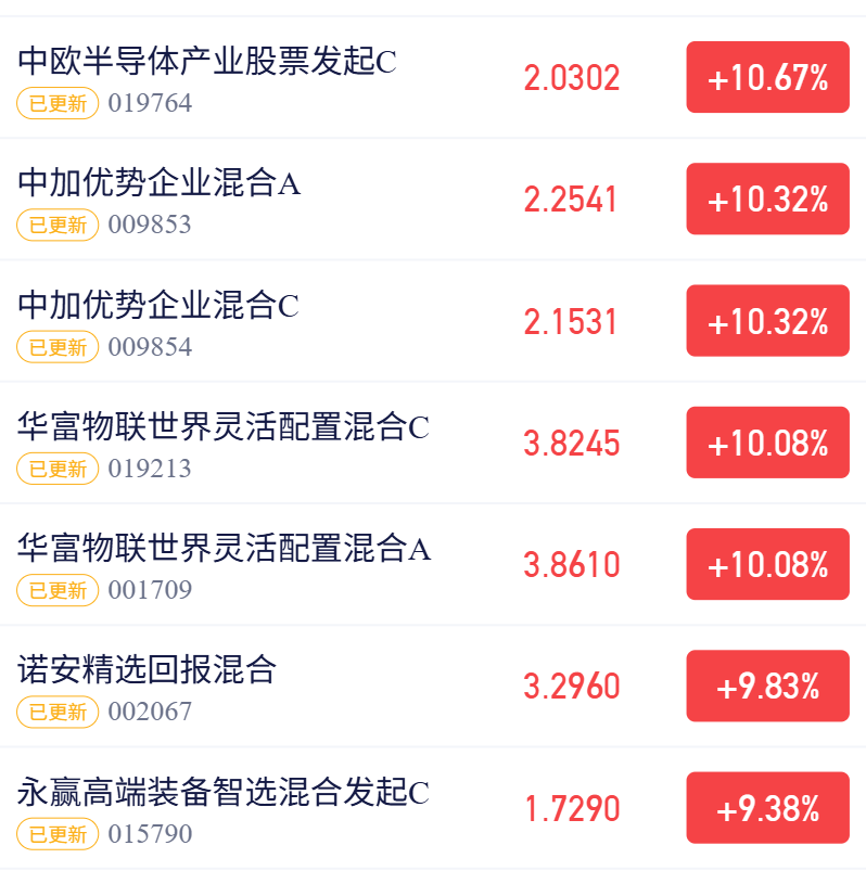 商业航天热度不减,中欧半导体C净值+10.67%!