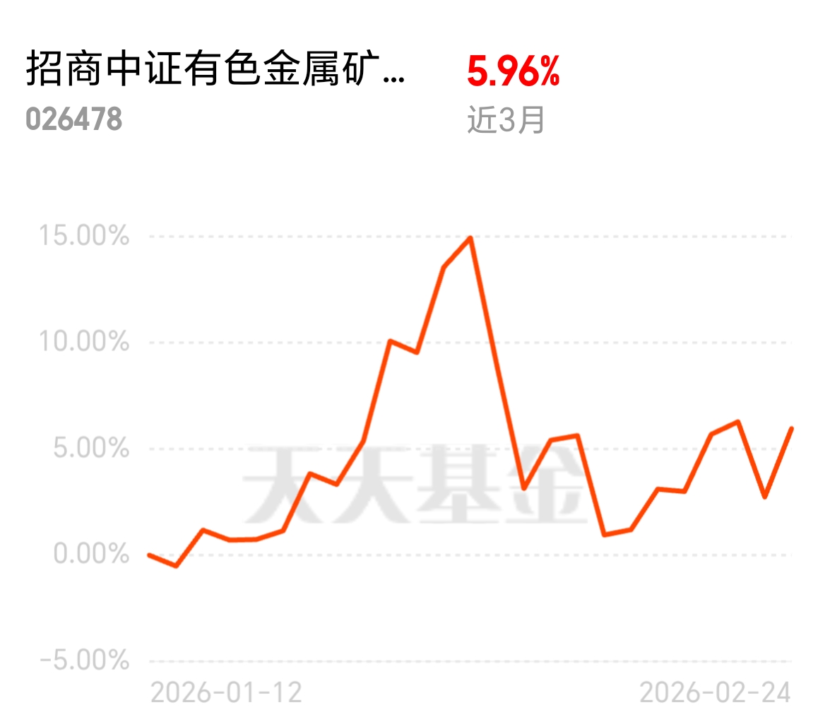 美伊局势加关税政策双催化,黄金涨势明确,有色板块迎来布局良机。招商中证有色金属矿业主题 ETF 发起式联接 C近一周涨幅 3.13%,费率最低一档,当下位置正合适,继续布局。$招商中证有色金属矿业主题ETF发起式联接C$