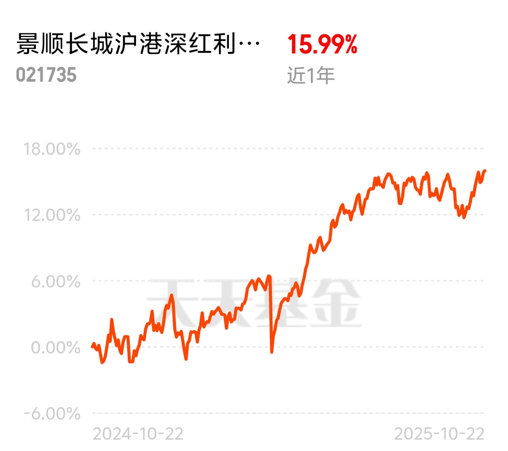 我买的7免指数基景顺长城沪港深红利低波连红3天了,连续18个季度分红,可以长拿$