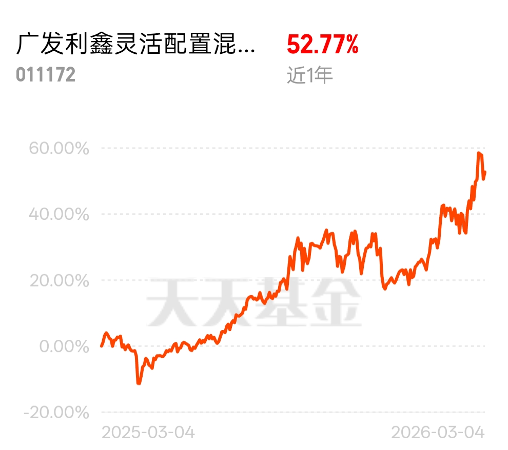上个月就在跟投广发利鑫灵活配置C,当时看中的就是它灵活的调仓能力。昨天逆市涨了1