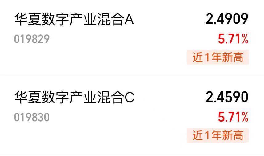 昨天反弹了近6个点,创近一年新高,短期爆发力不错,我看近半年也涨了105个点,业绩翻倍了呢,今天给机会就果断加仓,持仓这么多大龙头,后续可期啊$华夏数字产业混合A$