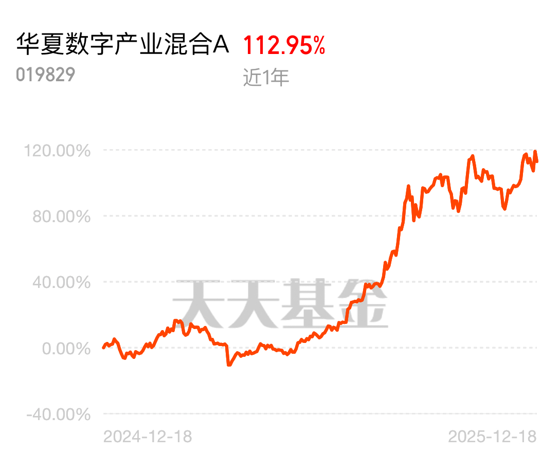海外AI算力需求高增长,这基重点投海外算力,后面行情还有,所以低位我就吸,毕竟近1年收益快113%,在全市场18000多只基金中排35,超额收益也很棒,拿长期肯定没问题的,现在行情回暖初期,最适合加仓了$华夏数字产业混合A$