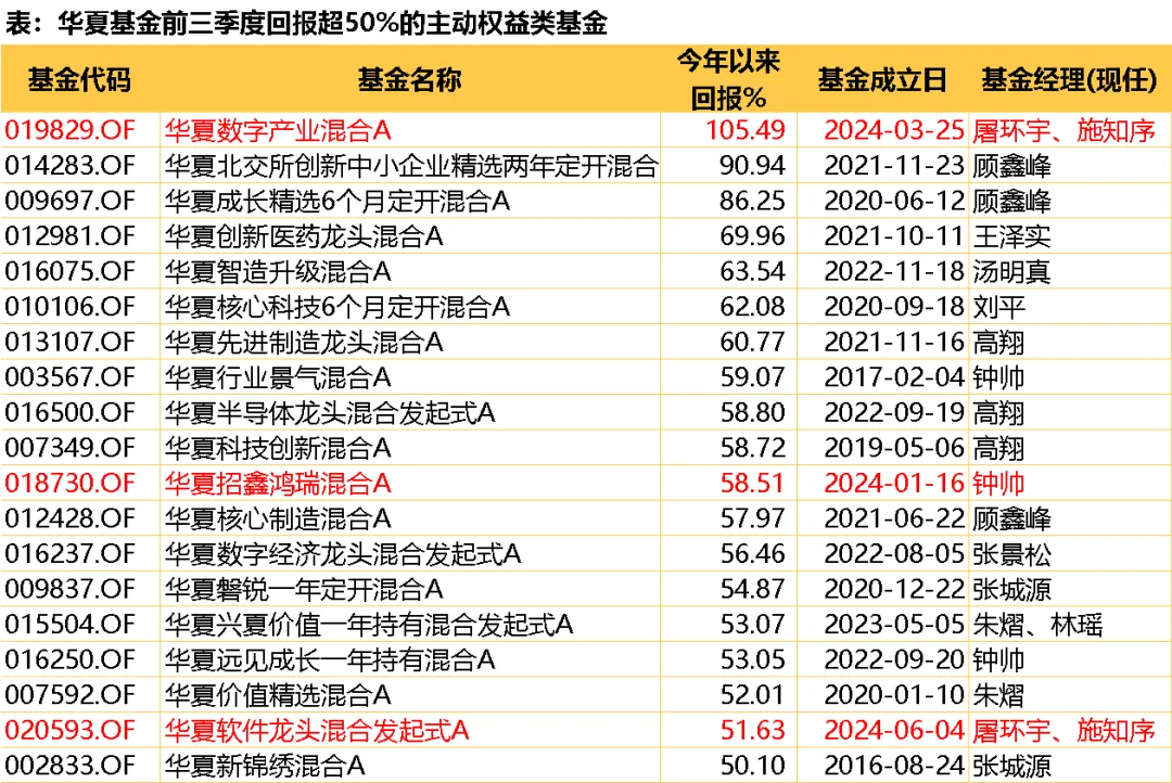 其中,华夏数字产业混合A是今年市场中的“翻倍基”,年内回报达到105%。