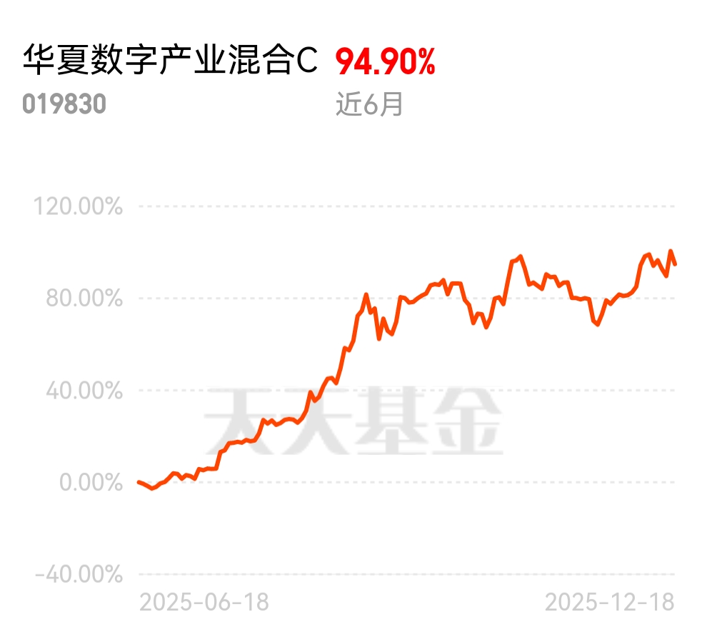 算力长期需求大,盈利确定性强,我看趁估值合理再布局一波,这基业绩弹性也好,近6个月就有近95%的收益呢$华夏数字产业混合C$