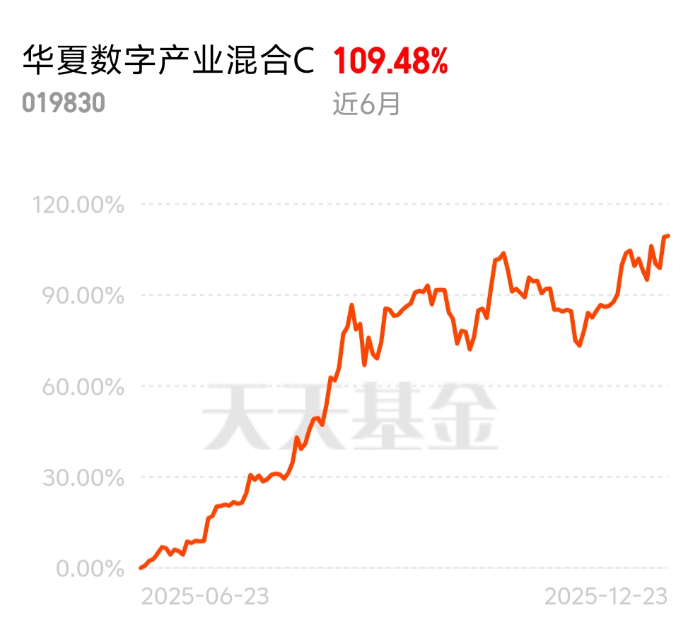 这两天我老公和我说白银涨幅很大,我和他说华夏数字产业混合C(019830),也很牛。年初买的华夏数字产业混合C(019830),现在都翻倍了,今年来的收益率123.52%。