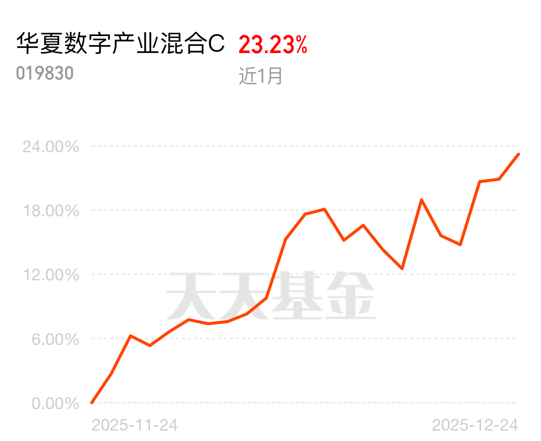 昨天这基又拿下1.93%的涨幅,近1个月刚好涨23.23%,看着还行 $华夏数字产业混合C$
