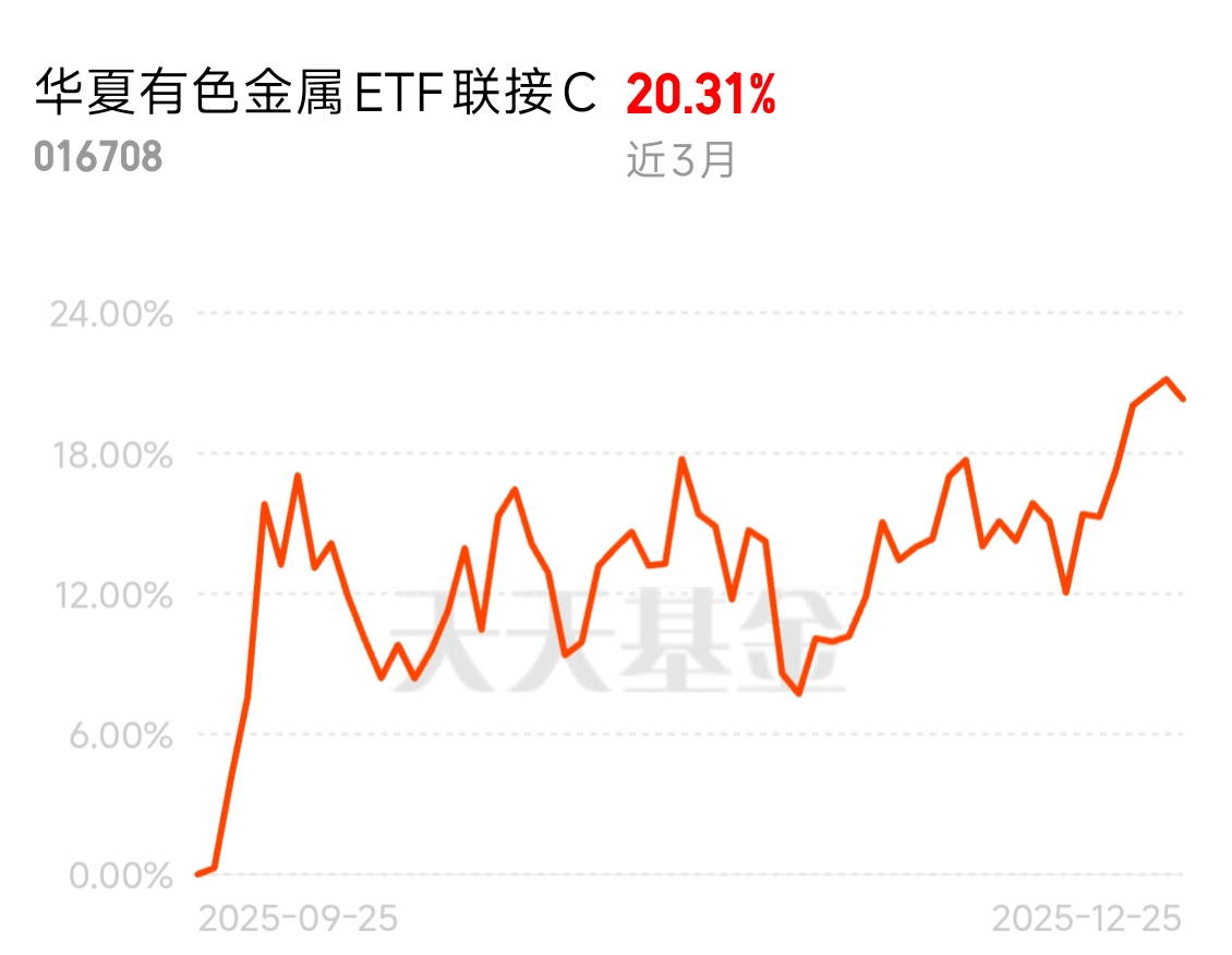 近3个月收益20%+,近5天中有4天正收益,当前涨幅近4%,这波反弹太给力了,$华夏有色金属ETF联接C$布局铜、铝、黄金等,D份额还有7天免赎,这机会属实难得$华夏有色金属ETF联接D$