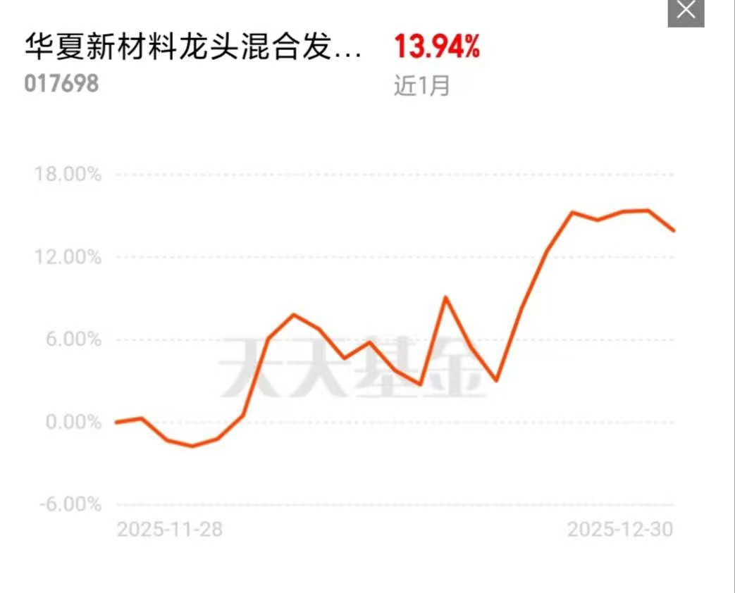 加仓走起,今天可以继续低吸,前面连涨的时候没来得及,近一个月涨了快14%,$华夏新材料龙头混合发起式C$重仓新能源与半导体材料龙头,持股集中度较高,反弹能力不错,给机会就加