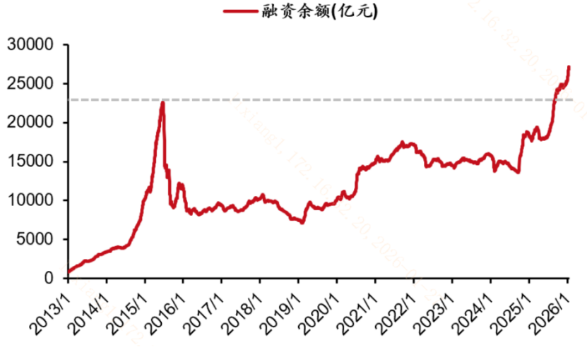两融余额为代表的活跃型资金对科技产业趋势较为敏锐,2025年三季度融资余额就突破了2015年6月创下的最高纪录,截至1月26日已经连续4个交易日处于2.7万亿元以上,为科技股提供了资金面的支撑。(信息来源:Wind;西部证券;截至20260126)