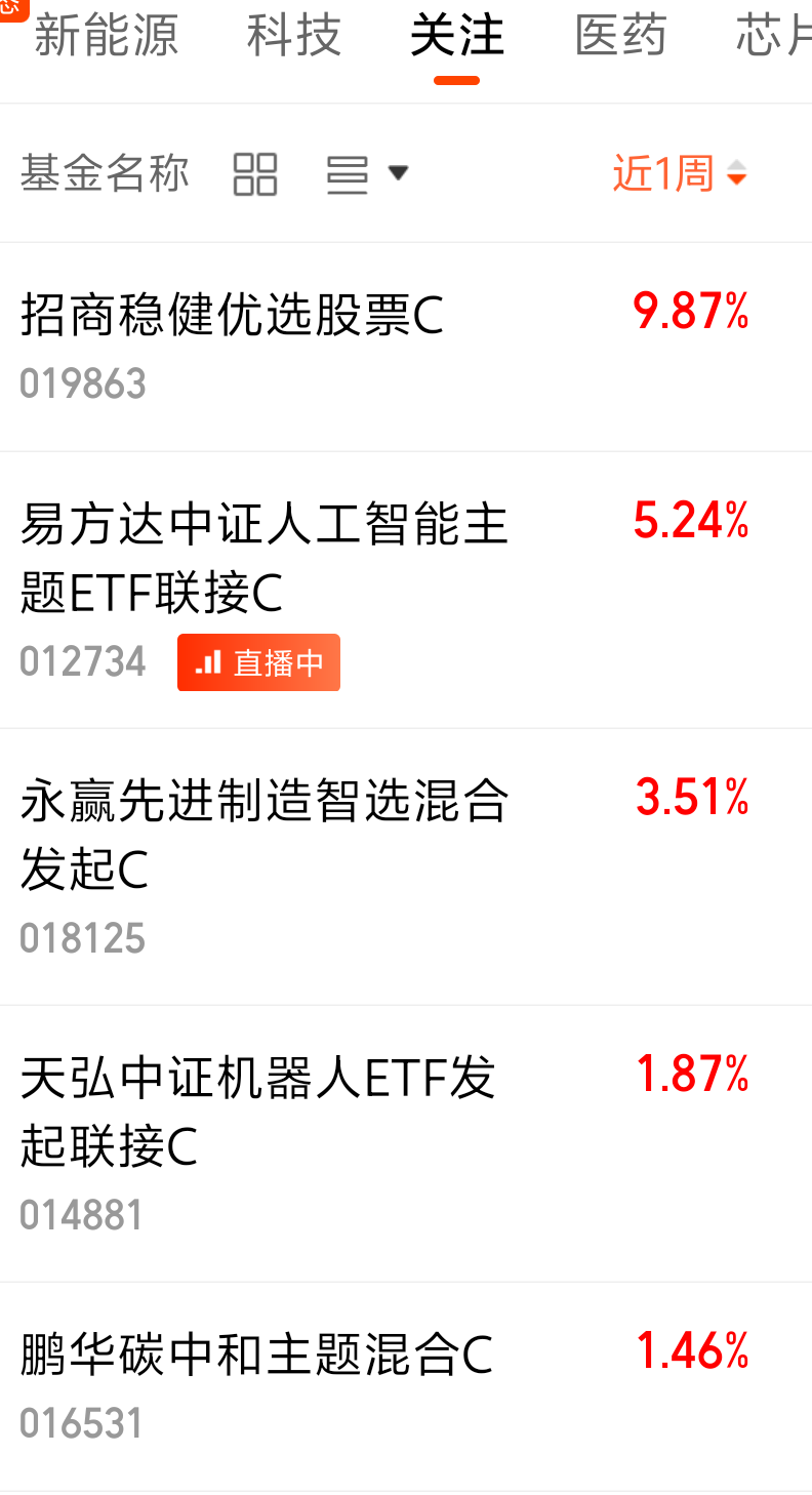 $易方达中证人工智能主题ETF联接C$ 近一周上涨了5.24%