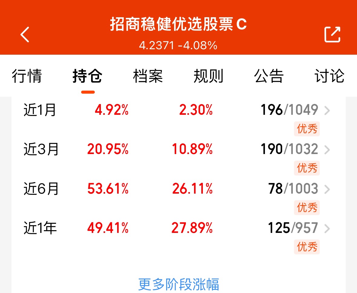 $招商稳健优选股票C$ 进一个月涨了4.92%,近三个月涨了20.95%,挺好的