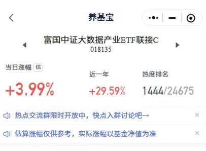 看起来$富国中证大数据产业ETF发起式联接C$表现得挺不错的,今天又涨了4个点,