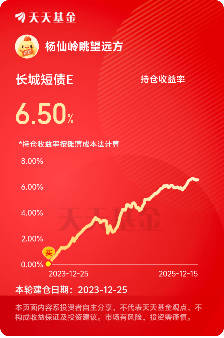 $长城短债E$ 的亮眼表现证明,短债基金的超额收益并非来自“赌久期”或“踩信用”,而是源于基金经理对行情的深刻理解、策略的精准执行和风险的严格把控。在年末债市低波动、银行配置需求旺盛的环境下 ,这类兼具稳健性与收益性的产品,仍是低风险偏好投资者的优质选择。