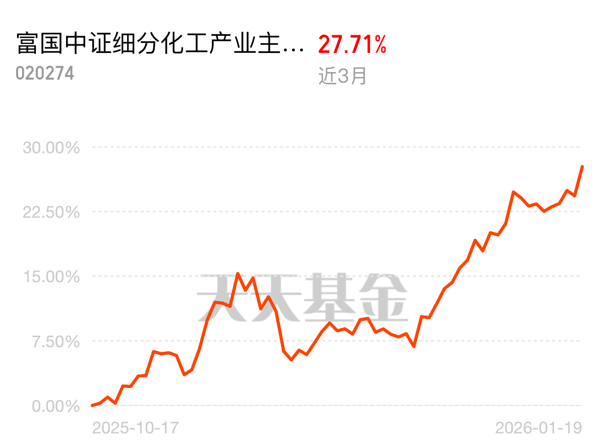 同样是金属相关,稀有金属讲的是资源稀缺和战略储备,而化工讲的是工艺积累和保有量效应。我手里的富国中证细分化工产业主题ETF联接C最近表现挺稳,昨天上涨,近1周收益达4.2%,近3个月赚了28%,跑赢了大多数同类基金,属于细分化工赛道里的领先者。它覆盖化学原料、化学制品、化学纤维等领域的龙头企业,这些企业依靠技术壁垒和成本优势,在行业整合中逐步脱颖而出。富国这只产品更侧重于周期性行业中俱备长期竞争力的企业。当前化工板块开工率回升、产品价差修复,叠加嬴利预期改善,关注度明显升温,富国中证细分化工产业主题ETF联接C这个阶段的表现值得关注