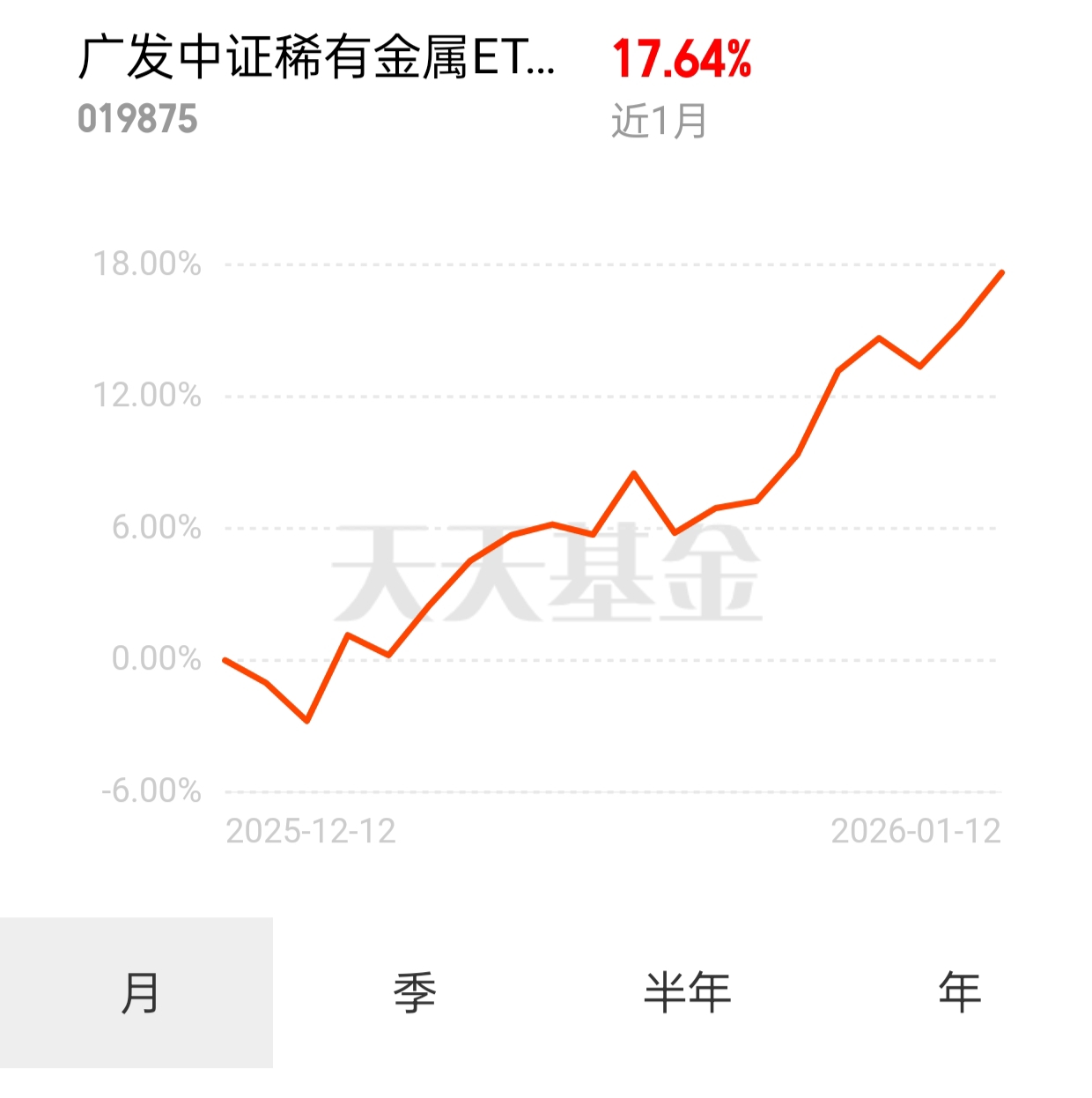 有人说稀有金属涨太多不敢入,但看看基本面,小金属价格持续走强!去年12月国内钨产品价格一路高歌,各核心产品涨幅显著。在这样的大背景下,稀有金属板块强势爆发!$广发中证稀有金属ETF发起式联接C$(019875)重点布局稀有金属,比普通有色更聚焦锂矿,昨天大涨2.05%,今天盘中净值估算再度大涨1.88%,跟着这波行情准没错#商业航天大幅调整 止盈信号还是倒车接人?#