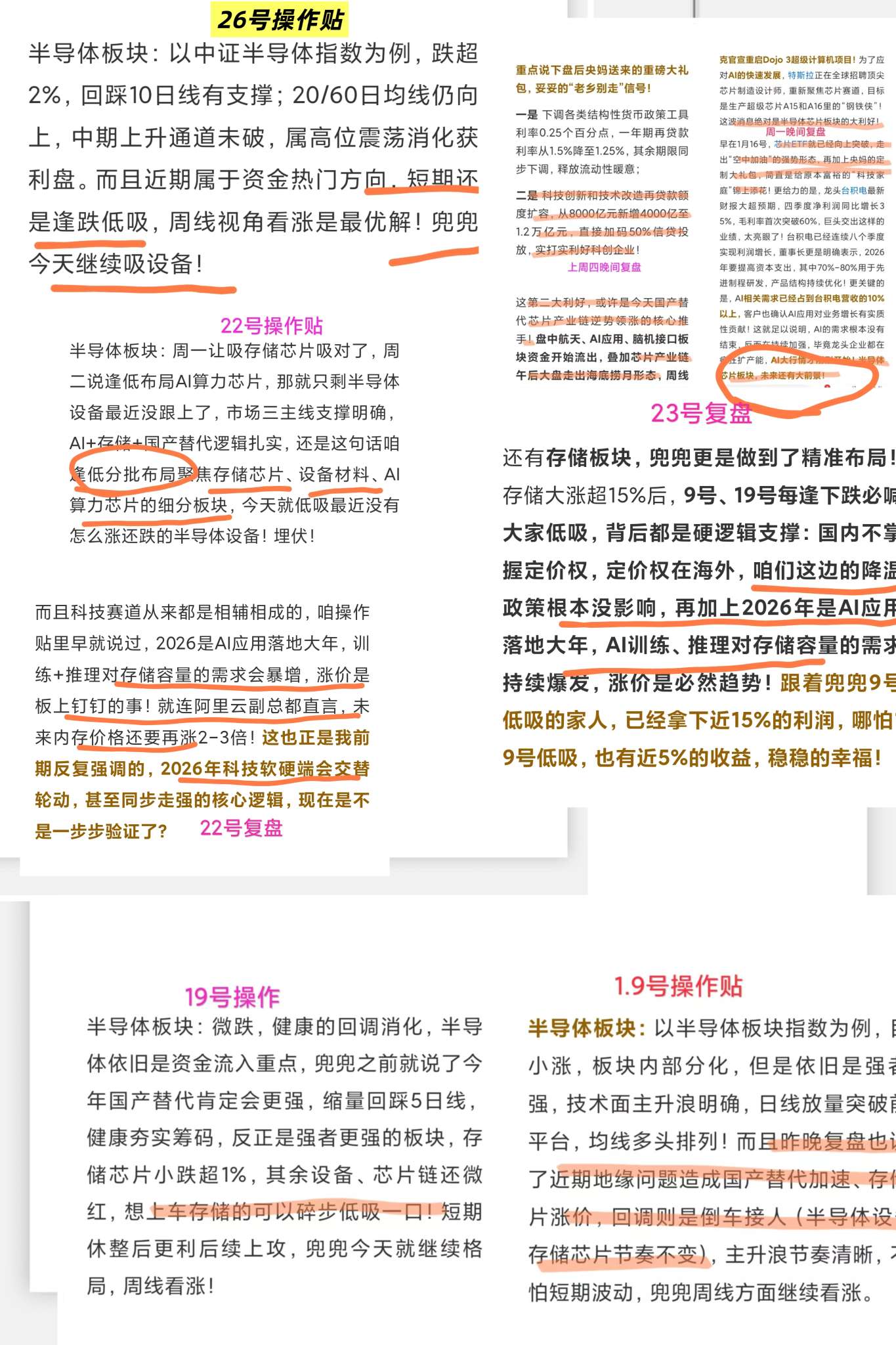 半导体这边同样精准把控,上周四、昨日板块回调时,我一直坚定喊大家低吸半导体设备,这波直接冲高超3%;存储、算力芯片更是反复强调逢调低吸,上周复盘也多次拆解半导体核心逻辑!自从咱们重点关注存储后,板块一路涨多跌少,昨天还有小伙伴跟着思路加仓,今天直接喜提4%大肉,妥妥把前两天的小损失全部扳回!