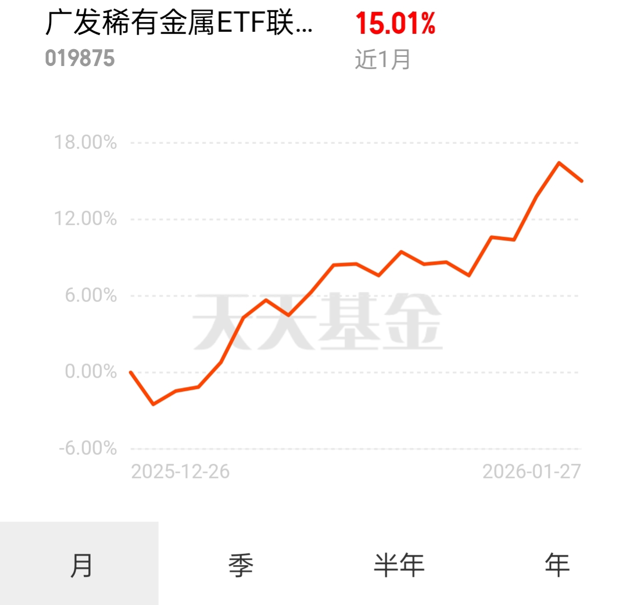 贵金属连续领涨全市场,上海金ETF(518600)高开高走,再度刷新历史新高,板块热度正盛。这只$广发中证稀有金属ETF发起式联接C$(019875)紧跟板块行情,近一年涨112.25%。供需错配没解决,地缘风险还在发酵,短期回调是加仓窗口,不用怕踏空后续行情#AI助手Clawdbot爆火!AI应用迎布局机会?#