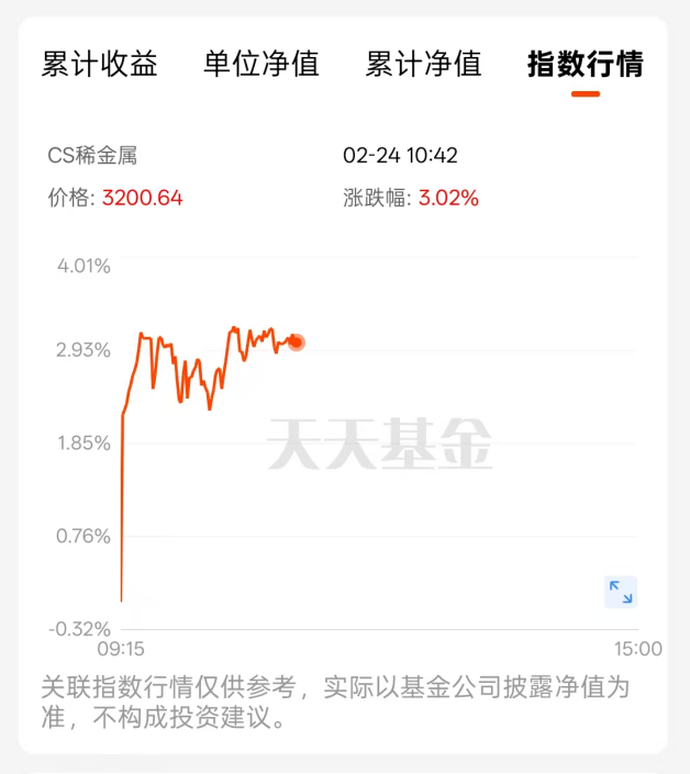 春节假期结束,今天早盘,稀有金属板块强势攀升,盘中中证稀有金属主题指数涨近3%,盛新锂能、永兴材料等个股创阶段新高。我最近一直关注的$广发中证稀有金属ETF发起式联接C$(019875),紧密跟踪中证稀有金属主题指数,凭借锂、稀土、钴含量均超行业平均的水平,或是把握本轮行情的优选。